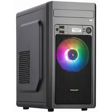 Počítačová skriňa Evolveo M2 na prvý pohľad zaujme svojim štýlovým vzhľadom. V skrini je dostatok priestoru. Na zadnej strane nájdete sedem slotov na inštaláciu najrôznejších grafických i rozširujúcich kariet.