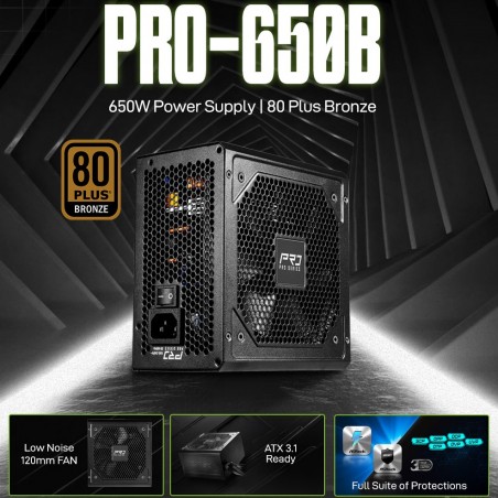 Ide o kvalitný napájací zdroj s maximálnym stálym výkonom 650W a štandardom ATX 3.1. Disponuje 80 Plus Bronze certifikáciou. Poskytuje nízku úroveň hluku ventilátora. Má konektory: 1x 24-pin pre základnú dosku, 1x 4+4-pin pre procesor, 1x 6+2-pin pre PCI-e, 4x SATA a 2x Molex.