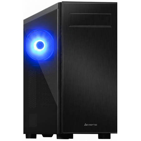 Jedná sa o kvalitnú a štýlovú skriňu s bočnicou z tvrdeného skla. K dispozícii sú pozície pre 4 ventilátory (zadný ventilátor s efektným modrým LED podsvietením je už nainštalovaný). Na hornej strane nájdete panel ponúkajúci 2x USB3.0, 1x USB2.0 a audio porty. Skriňa má rozmery 435x200x450 mm.
